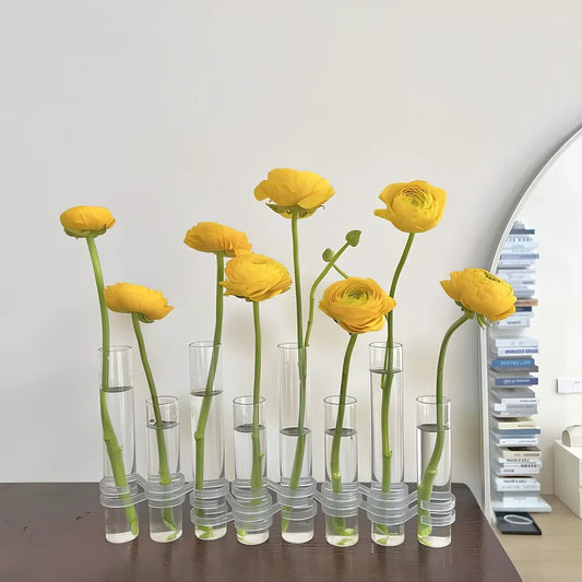 Clear Glass Test Tube Vase with Hinged Tubes for Flexible Floral Arrangements