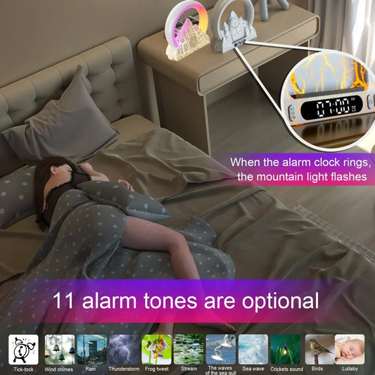 Colorful Flame Mountain Wireless Charging Alarm Clock with 15W Power