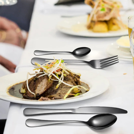 24-Piece Stainless Steel Cutlery Set in Multiple Finishes with Wood Box Option
