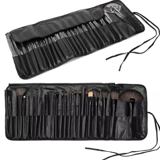 24-piece makeup brush set with 3.5cm bristle length and 20cm wooden handles, providing professional application tools for foundation, contouring, and eyeshadow blending with complete coverage options