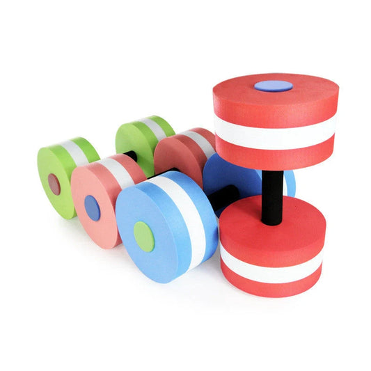 2-piece EVA water aerobics dumbbells measuring 15cm for swimming pool training with buoyant resistance and snap-type closure system