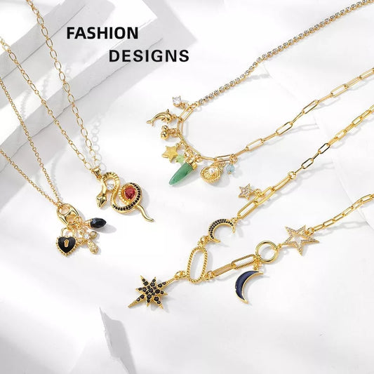 homeenjoy.uk Copper-plated Real Gold Star and Moon Rhinestone Necklace