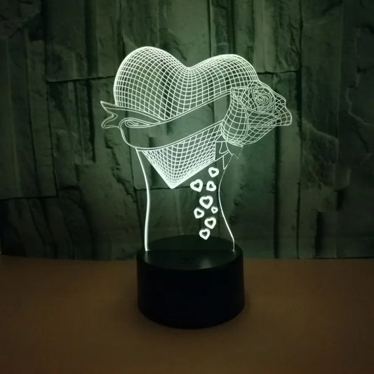 3D night light with touch and remote control featuring seven colour options and adjustable brightness settings for personalised ambient lighting