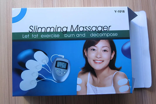 4-pad electric muscle stimulator with 8 massage modes for full-body slimming and fat burning, featuring electromagnetic massage technology and LED display for targeted muscle tension relief
