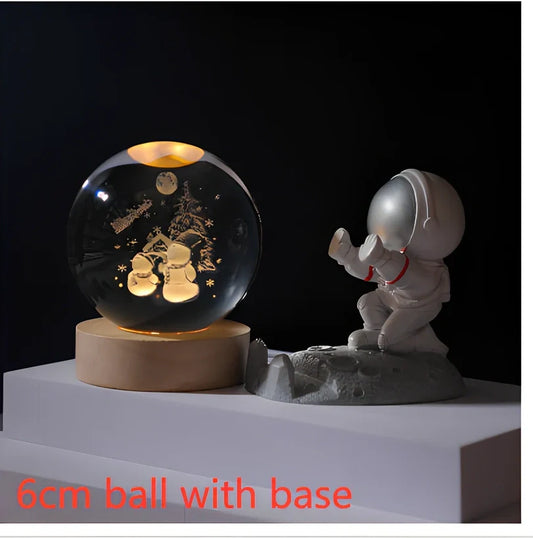 3D Crystal Ball Night Light with Wooden Base and Cosmic LED Projections
