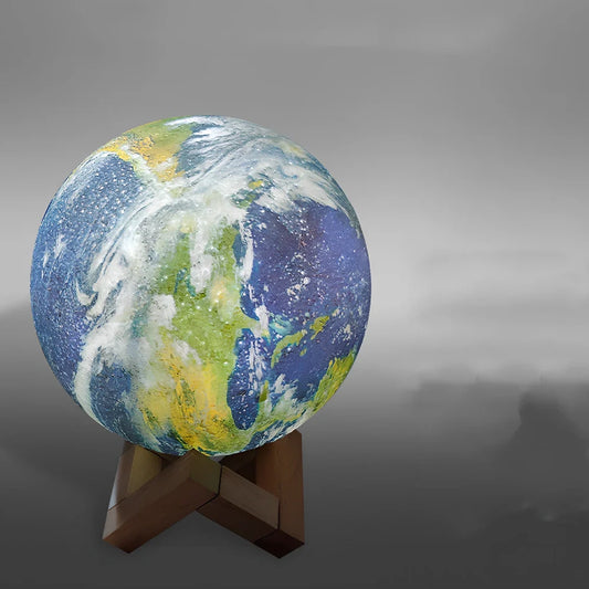 3D Print Lamp Moon Earth Lamp with 15cm diameter, 2-hour charging time, and 1W LED light source for ambient bedroom or office lighting