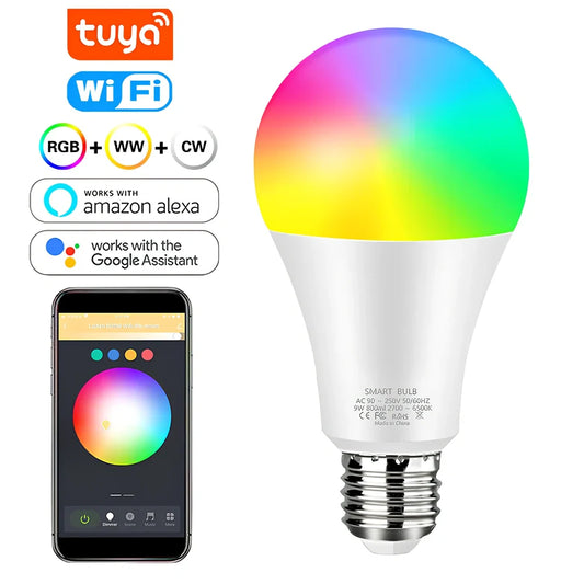 WiFi Smart Bulb with 850 Lumens Brightness and Voice Control - Tuya Smart RGBCW Colour Temperature with IP65 Weather Protection for UK Homes